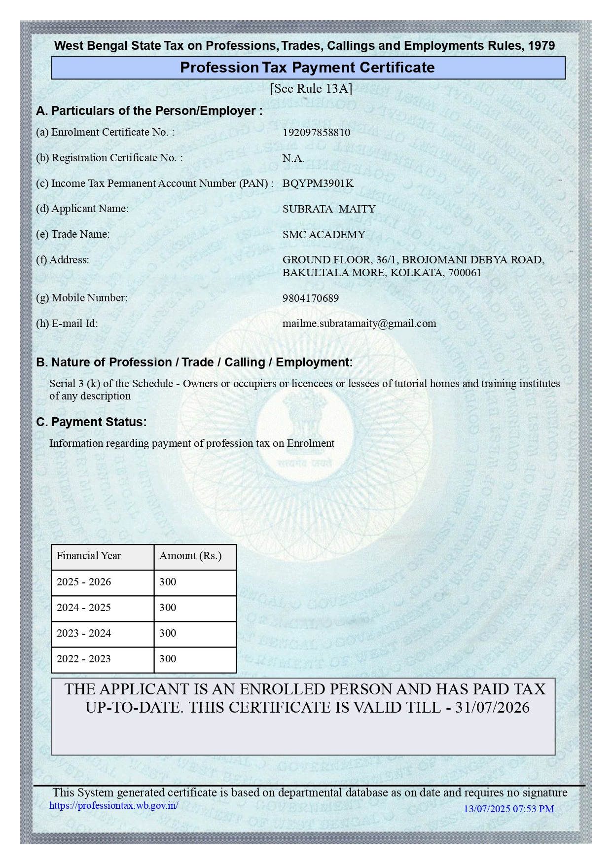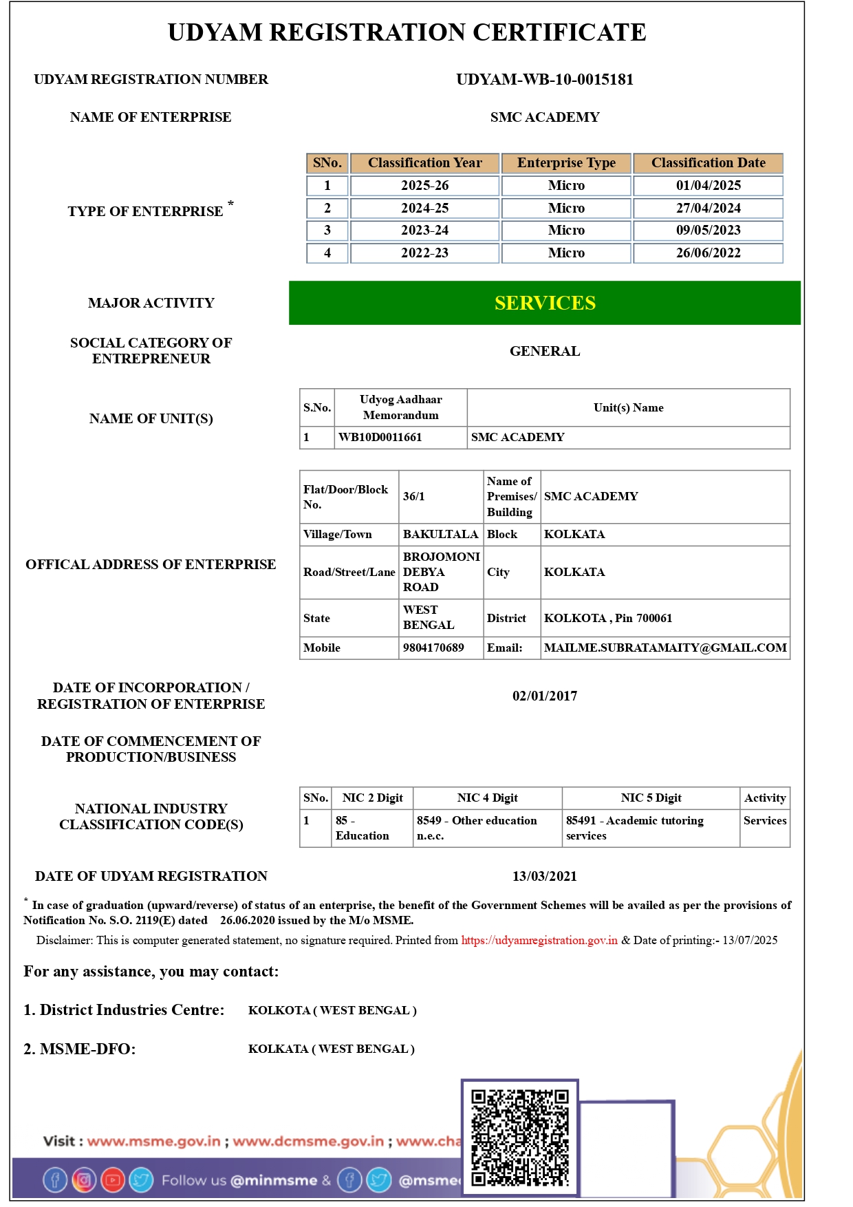 SMC Academy is Computer Training & Subject Coaching Centre Situated at Bakultala, Behala Chowrasta Kolkata. We Provide specialized computer training as per IT industry. Our main Moto is to spread knowledge to youth for better job opportunities and enable them to achieve economic empowerment. We believe in the quality teaching and training rather than just providing knowledge. This is the primary reason behind the increasing popularity of SMC Academy. Our key strength is our experienced faculty who are completely dedicated towards the growth of our students. We believe to boost up students towards latest application of information Technology and help them to gain better Information Technology career in future.
